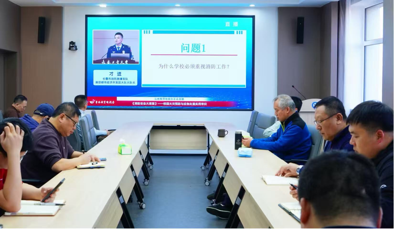 活动采取分类观看形式:无课教师在会议室集中观看直播,有课教师及学生统一于晚自习时间观看回放,确保消防安全教育全员覆盖。