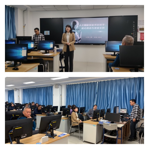 副院长赵娜、周伟、董洪涛分别从课程资源建设、教学督导评价、实验室保障三方面,就如何支撑AI辅助落地作了补充发言。与会教师代表王兆明、杨立英一致认为本次分享“问题找得准、工具用得好、数据说得清”,为语文、数学等预科主干课程数智赋能建设打开了思路。活动现场气氛热烈,教师们纷纷表示,未来将以课程建设为核心,融合大数据、人工智能技术,构建“数智赋能教学、数据驱动评价、技术助力成长”的预科课程体系,持续提升预科人才培育质量。
